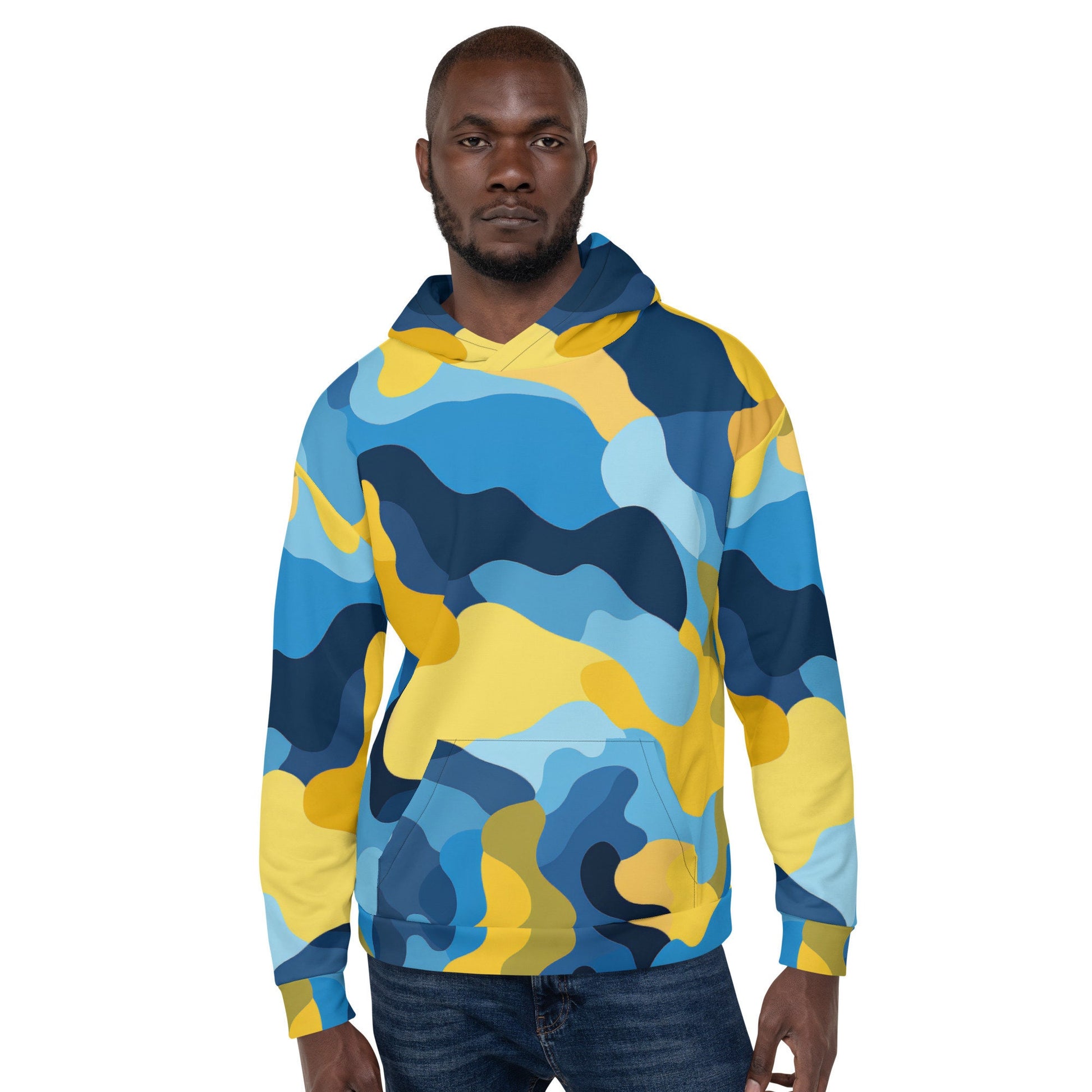 Elevate your game day and beyond with a fusion of fashion and functionality. Don't miss out on this remarkable hoodie. Order your Blue and Yellow Camouflage Hoodie today and redefine your style with an edge that mirrors your individuality in every setting.